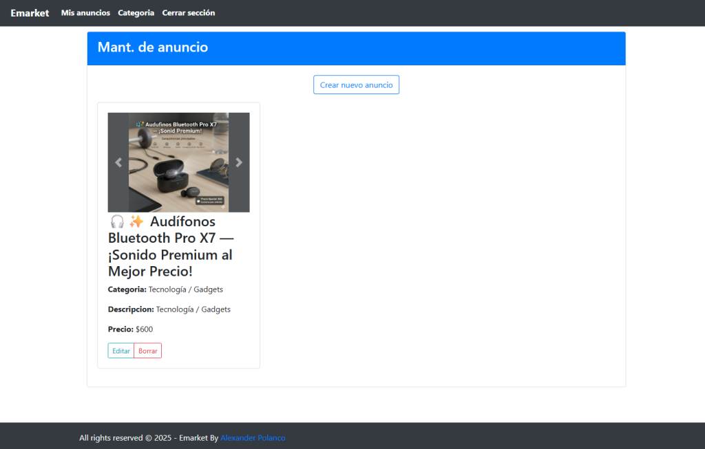 • Publicación de Productos: Interfaz para que los vendedores carguen imágenes, descripciones y precios de sus artículos.