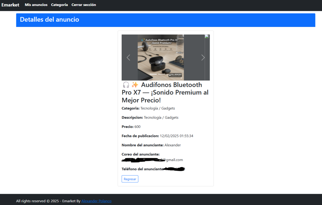 • Acceso a Contacto: Provisión clara y directa de la información de contacto del propietario del producto en su publicación.